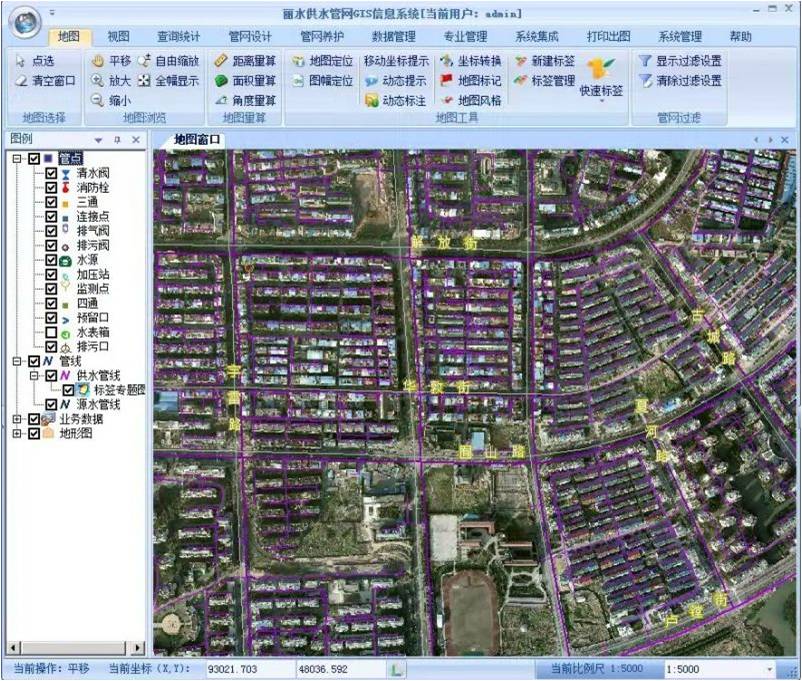 海威茨智慧水務中的“管網GIS地理信息系統是指”利用現有管道及地理地形數據,實現管道空間數據、屬性數據、拓撲關系的一體化管理,為供水系統城市規劃、設計、施工、輸配調度、生產調度、設備維修、管網改造、搶險及安全生產等作業提供所需的專業的信息。